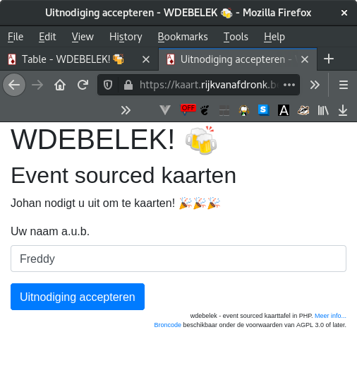 Als je met vrienden hebt afgesproken om samen te kaarten, en een van je vrienden maakt de uitnodigingen aan, dan ga je van die vriend een link krijgen waarop je moet klikken om die uitnodiging te accepteren. Vervolgens geef je je naam in, en de rest zal zichzelf uitwijzen. (En als je niet zou weten hoe het werkt, dan legt je vriend dat met plezier uit 😉.)